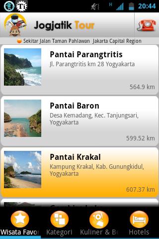 Jogjatik Tour serves as a personal tour guide of attractions located in Yogyakarta and surrounding areas. With this app, you can find hotels, get directions, learn about traditional food and markets, and more. You can also share via Facebook.